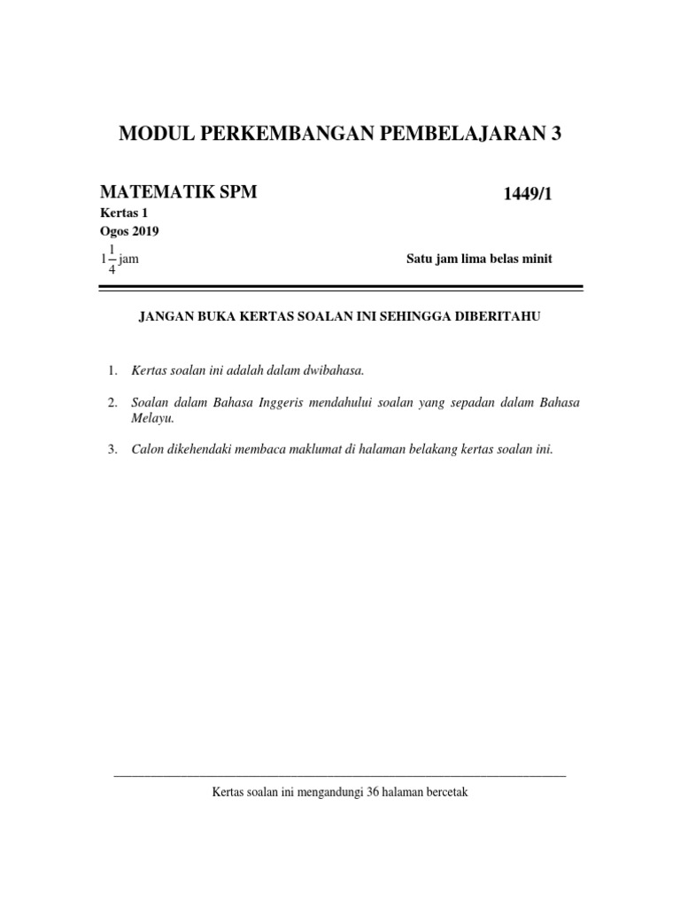 Kertas peperiksaan percubaan SPM 2021 ini disusun mengikut mata pelajaran bagi memudahkan guru dan calon SPM mencari kertas peperiksaan percubaan dengan lebih mudah dan cepat mengikut mata pelajaran. Add Math Dan Anda. Calon yang tidak dapat menduduki mana-mana.