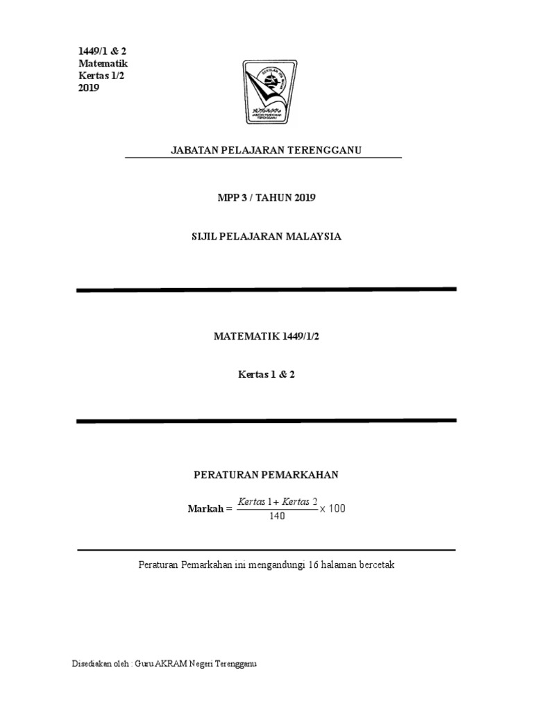 Trial Spm Terengganu Mpp3 Matematik K1 2019 Pdf